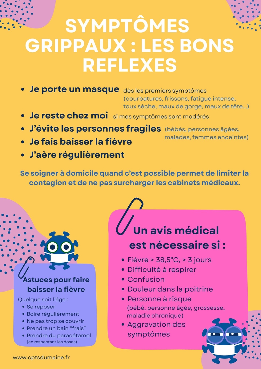 - Consulter rapidement si la fièvre dépasse 38,5°C, si vous avez des difficultés respiratoires ou si vous êtes une personne à risque.
